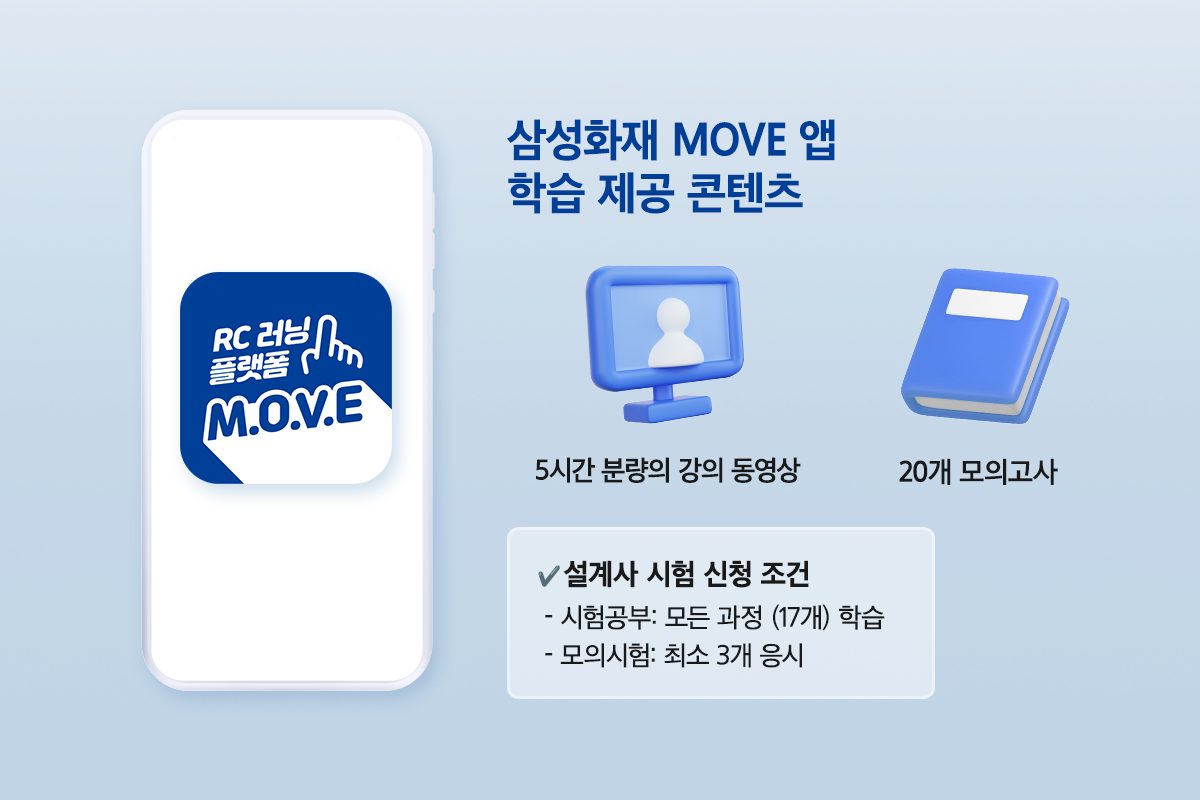 ์‹œํ—˜ ์‹ ์ฒญ์€ ์‚ผ์„ฑํ™”์žฌ ‘MOVE’ ์•ฑ์—์„œ ๋‚ด๊ฐ€ ์›ํ•˜๋Š” ์ง€์—ญ๊ณผ ๋‚ ์งœ๋ฅผ ์„ ํƒํ•ด ์‹ ์ฒญํ•˜์„ธ์š”. ์ž์„ธํ•œ ์‹œํ—˜์žฅ์†Œ์™€ ์‹œ๊ฐ„์€ ์†ํ•ด๋ณดํ—˜ํ˜‘ํšŒ์—์„œ ์ง€์ •ํ•˜๋ฏ€๋กœ ์‹œํ—˜์ผ 2~3์ผ์ „ ๊ฐœ๋ณ„ ์•ˆ๋‚ดํ•ด ๋“œ๋ฆฝ๋‹ˆ๋‹ค.