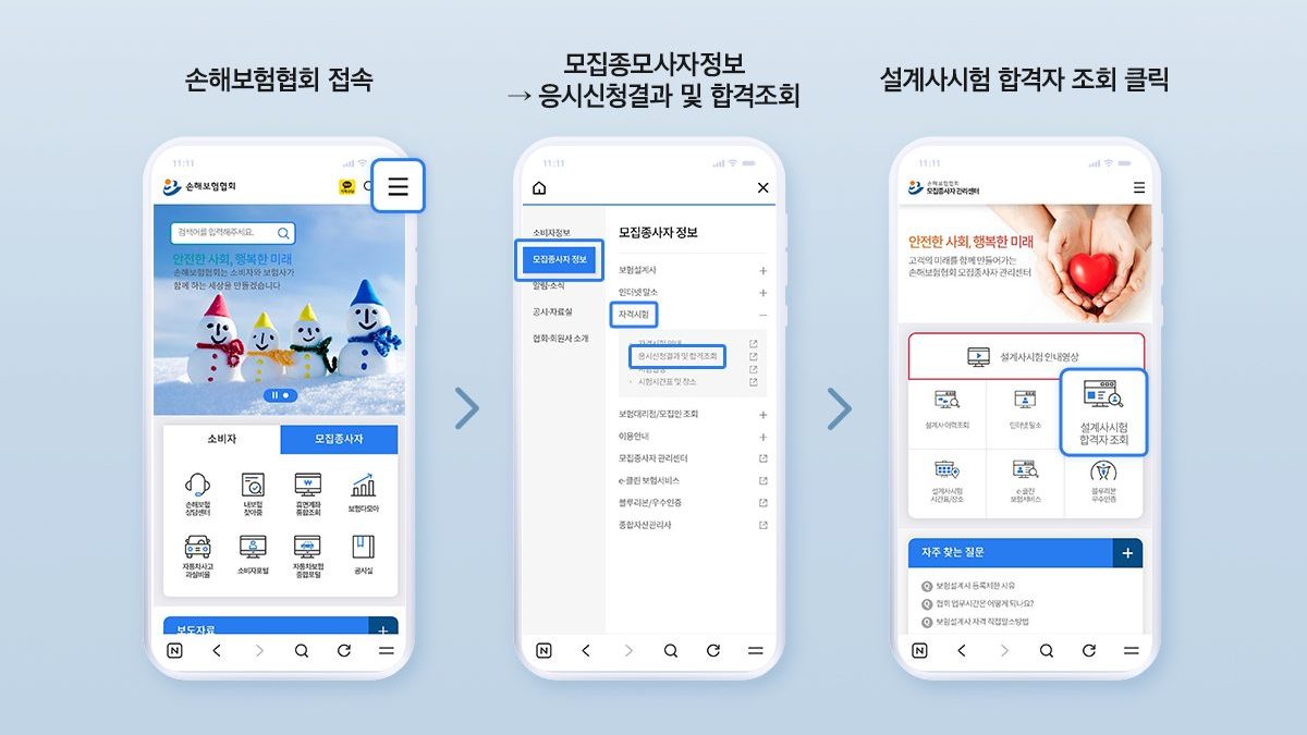 1๏ธโƒฃ์ž๊ฒฉ์‹œํ—˜ ํ•ฉ๊ฒฉ: ์†ํ•ด๋ณดํ—˜ํ˜‘ํšŒ์—์„œ ์ฃผ๊ด€ํ•˜๋Š” ์‹œํ—˜์— ์‘์‹œํ•ฉ๋‹ˆ๋‹ค. ์‹œํ—˜ ์‘์‹œ ํ›„ 1~2์ผ ์ด๋‚ด์— ๊ฒฐ๊ณผ๋ฅผ ํ™•์ธํ•  ์ˆ˜ ์žˆ์–ด์š”.